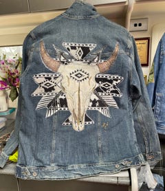 Explore my unique collection of pre loved and new denim jackets, skirts and shirts with hand crafted images that bring back a bygone era.