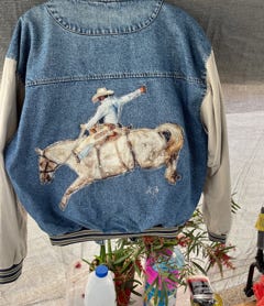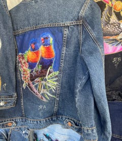 Explore my unique collection of pre loved and new denim jackets, skirts and shirts with hand crafted images that bring back a bygone era.